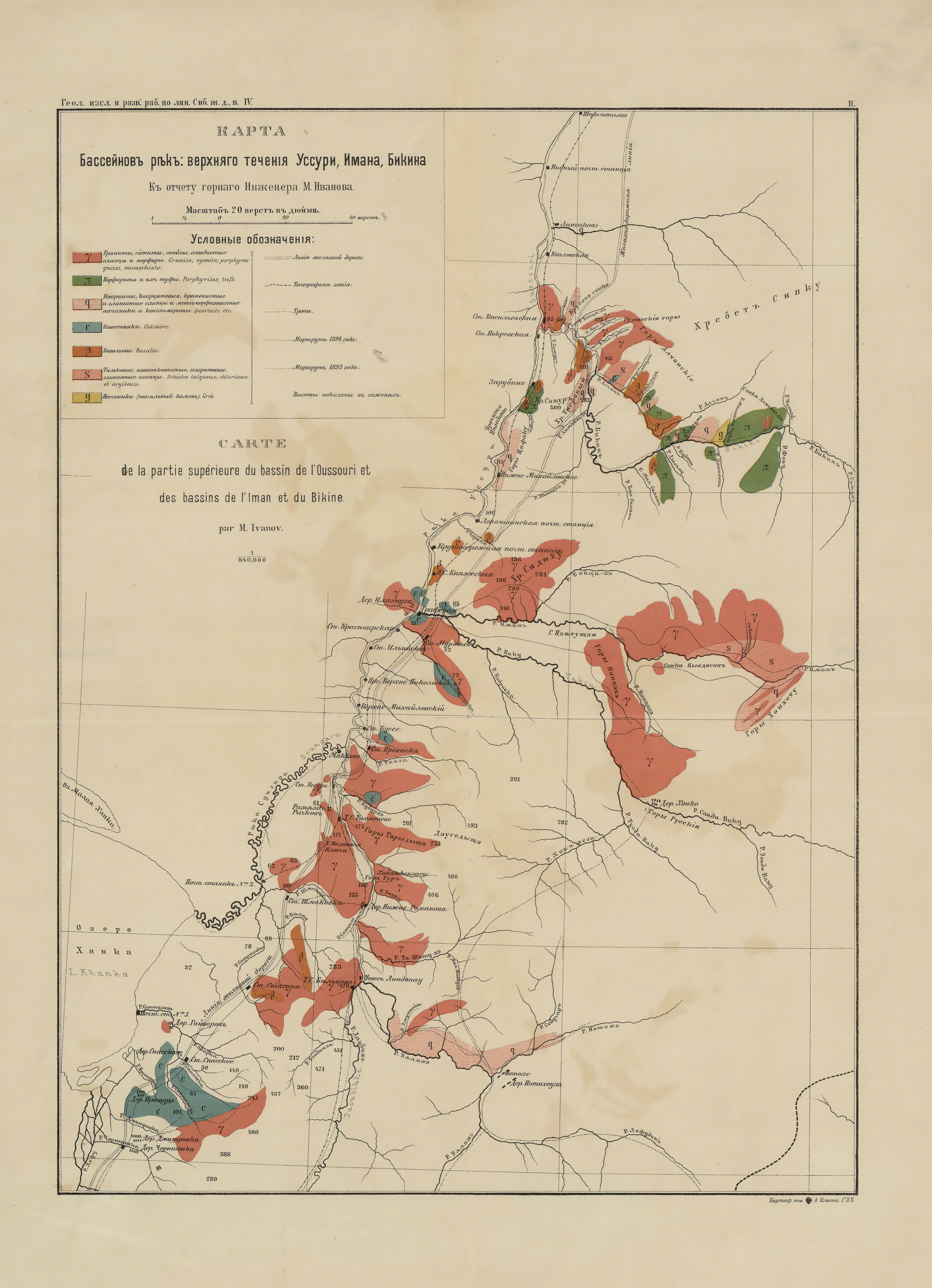 Карта бассейнов рек: верхнего течения Уссури, Имана, Бикина.