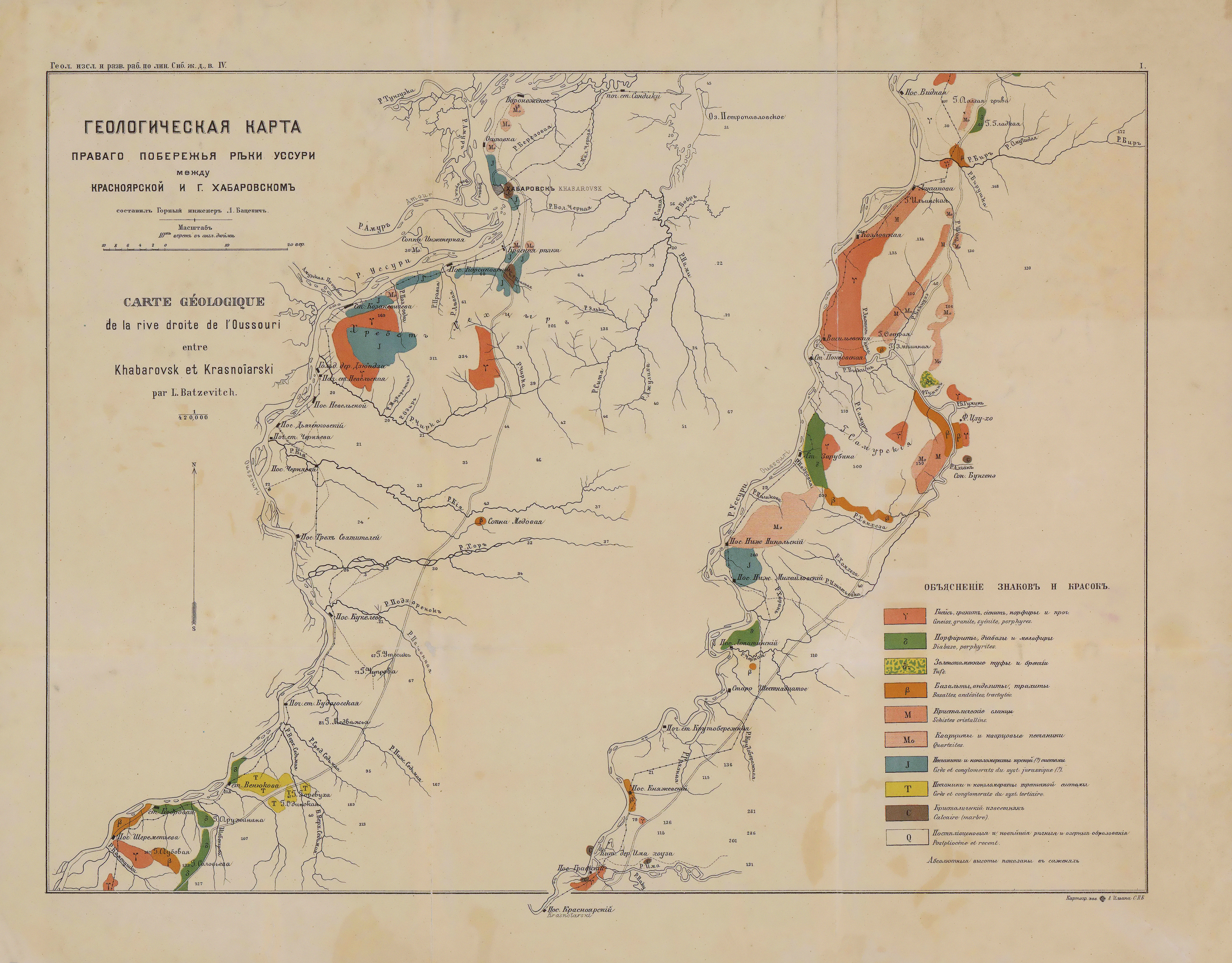 Геологическая карта правого побережья реки Уссури между Красноярской и городом Хабаровском