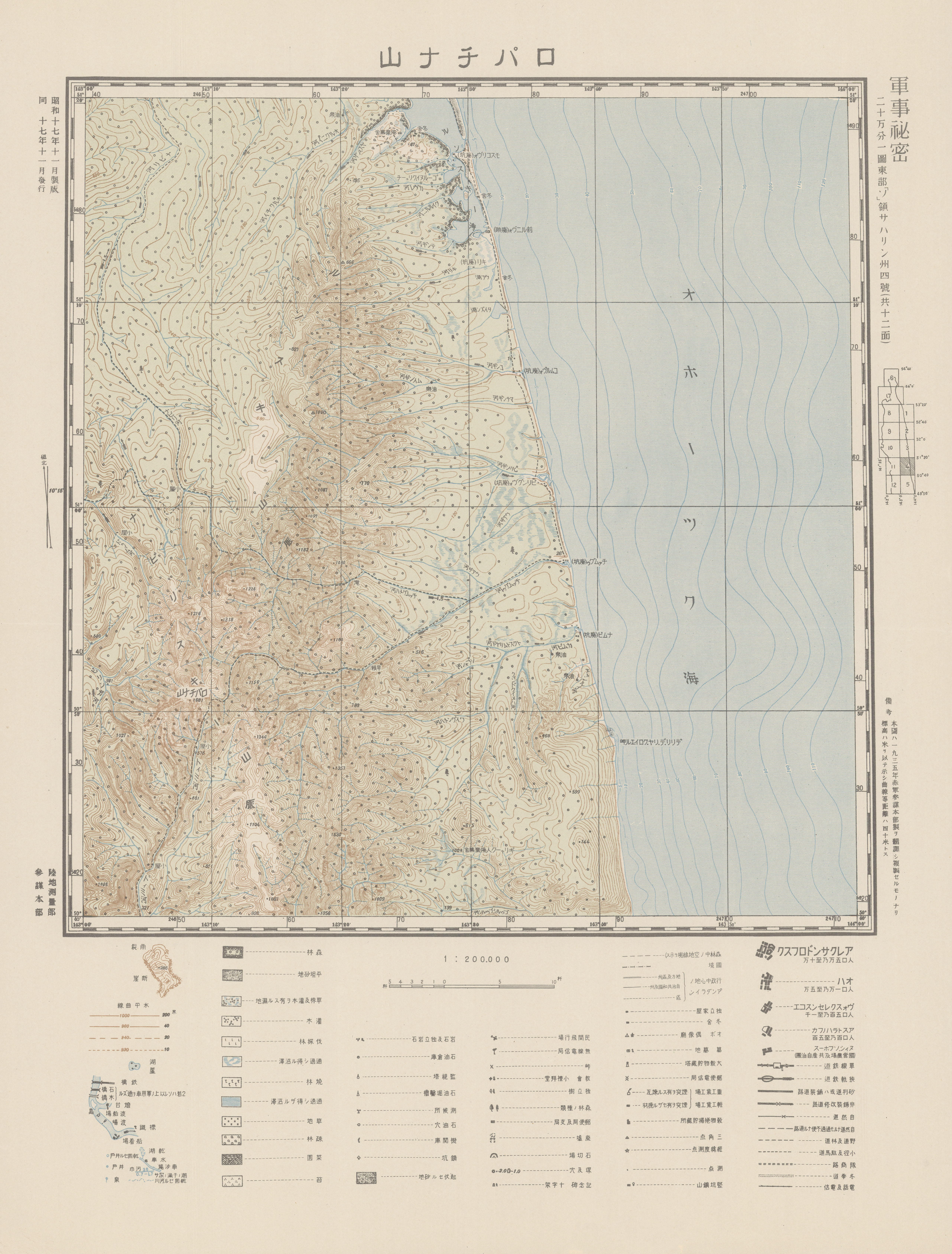 Двухкилометровка Лунского залива и горы Лопатина 1942 года на японском