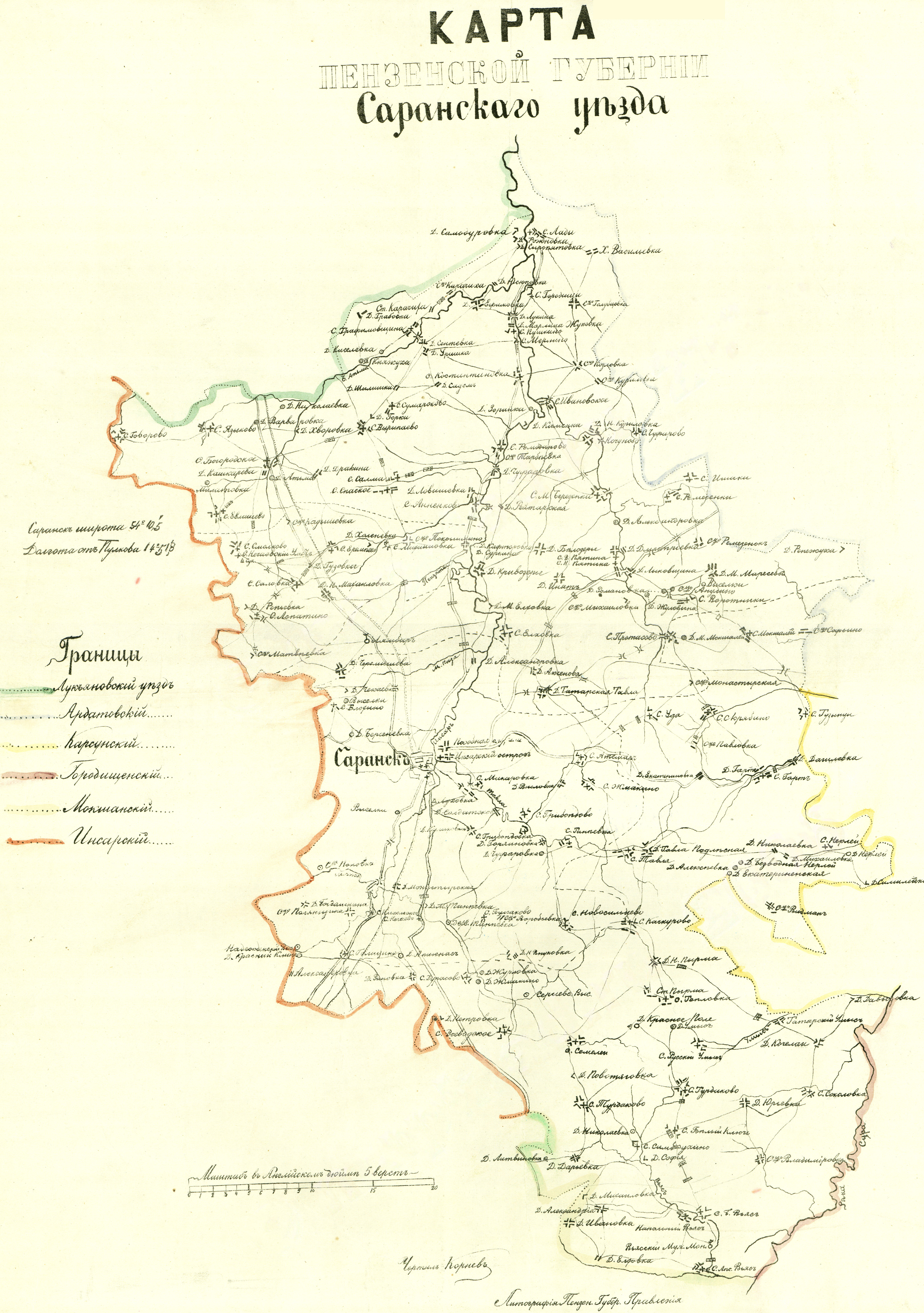 Карта Пензенской губернии Саранского уезда 1881 г.