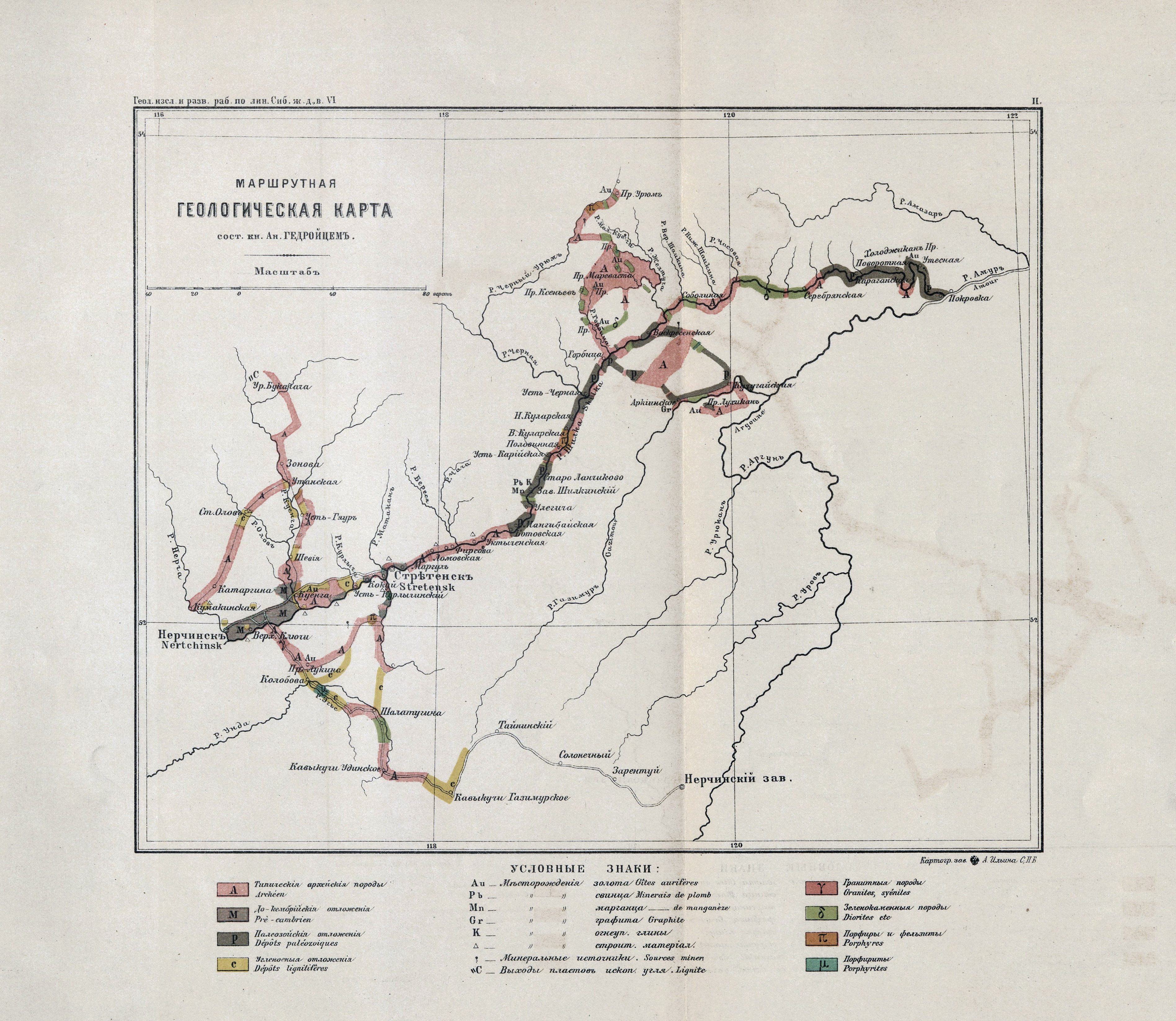 Маршрутная геологическая карта реки Шилки 1897 года Гедройца