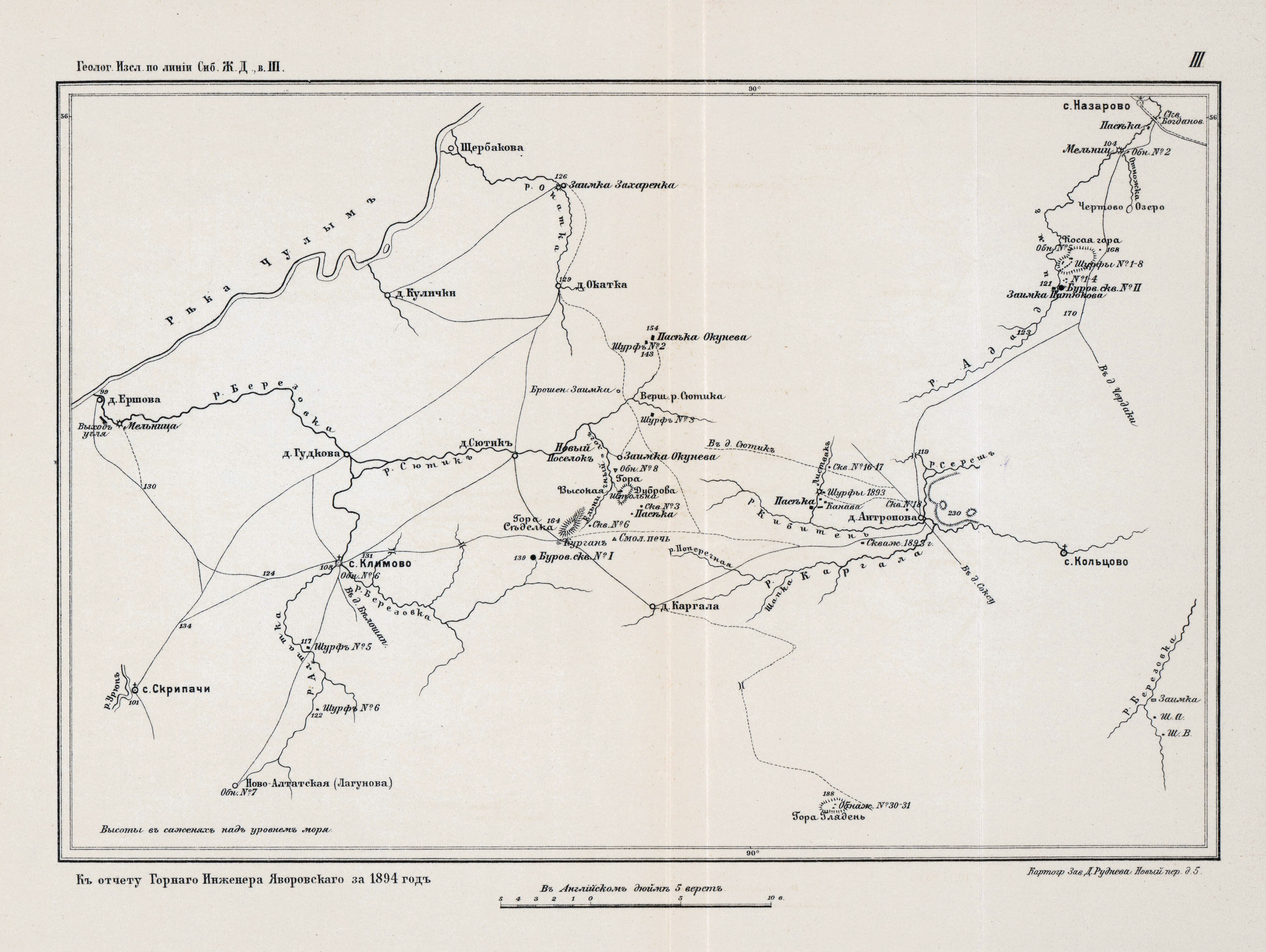 Карта части Ачинского уезда Енисейской губернии к отчёту горного инженера Яворовского