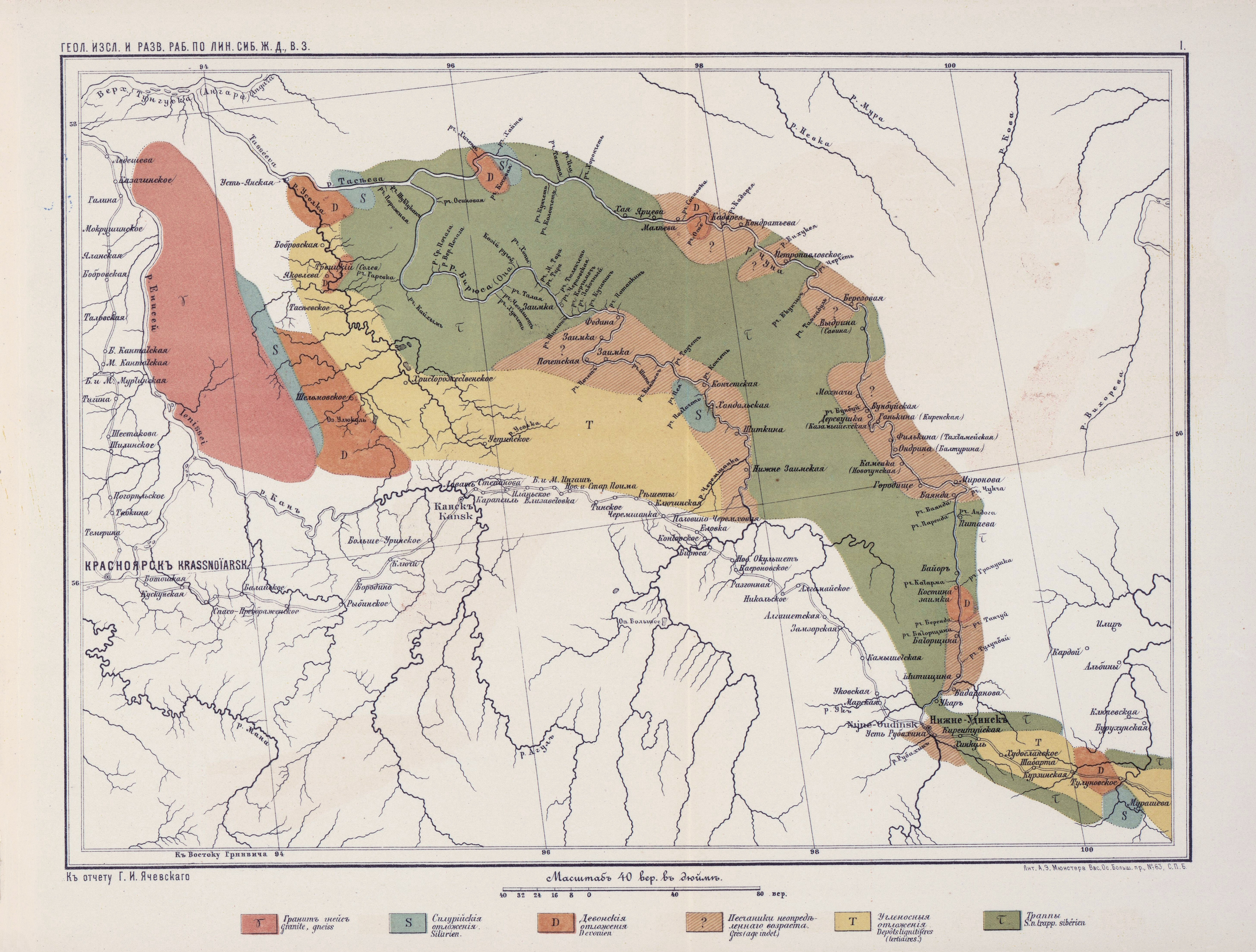 Карта Канского и Нижнеудинского районов к отчёту Г.И. Ячевского