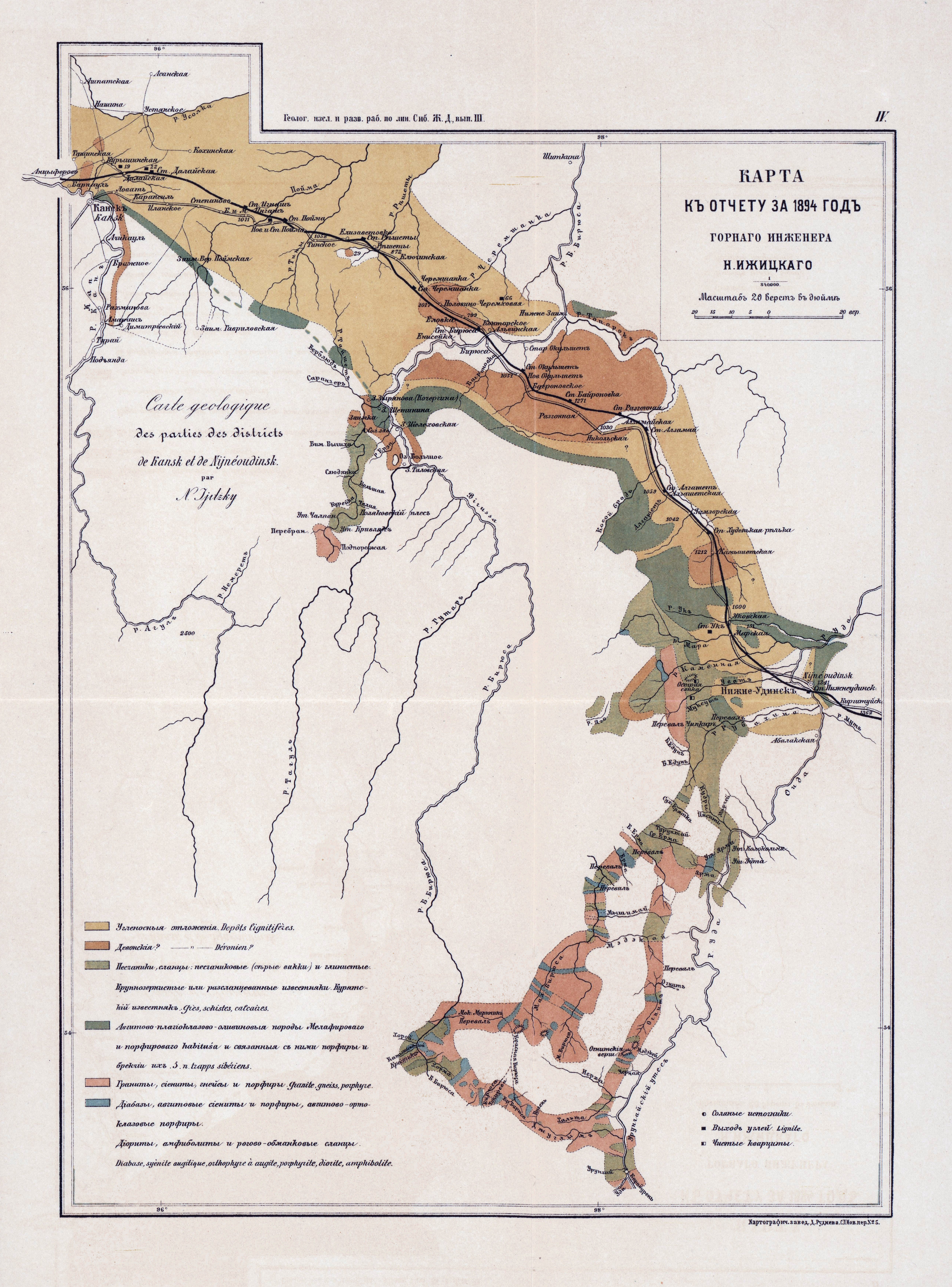 Карта Канского и Нижнеудинского районов к отчёту горного инженера Н. Ижицкого