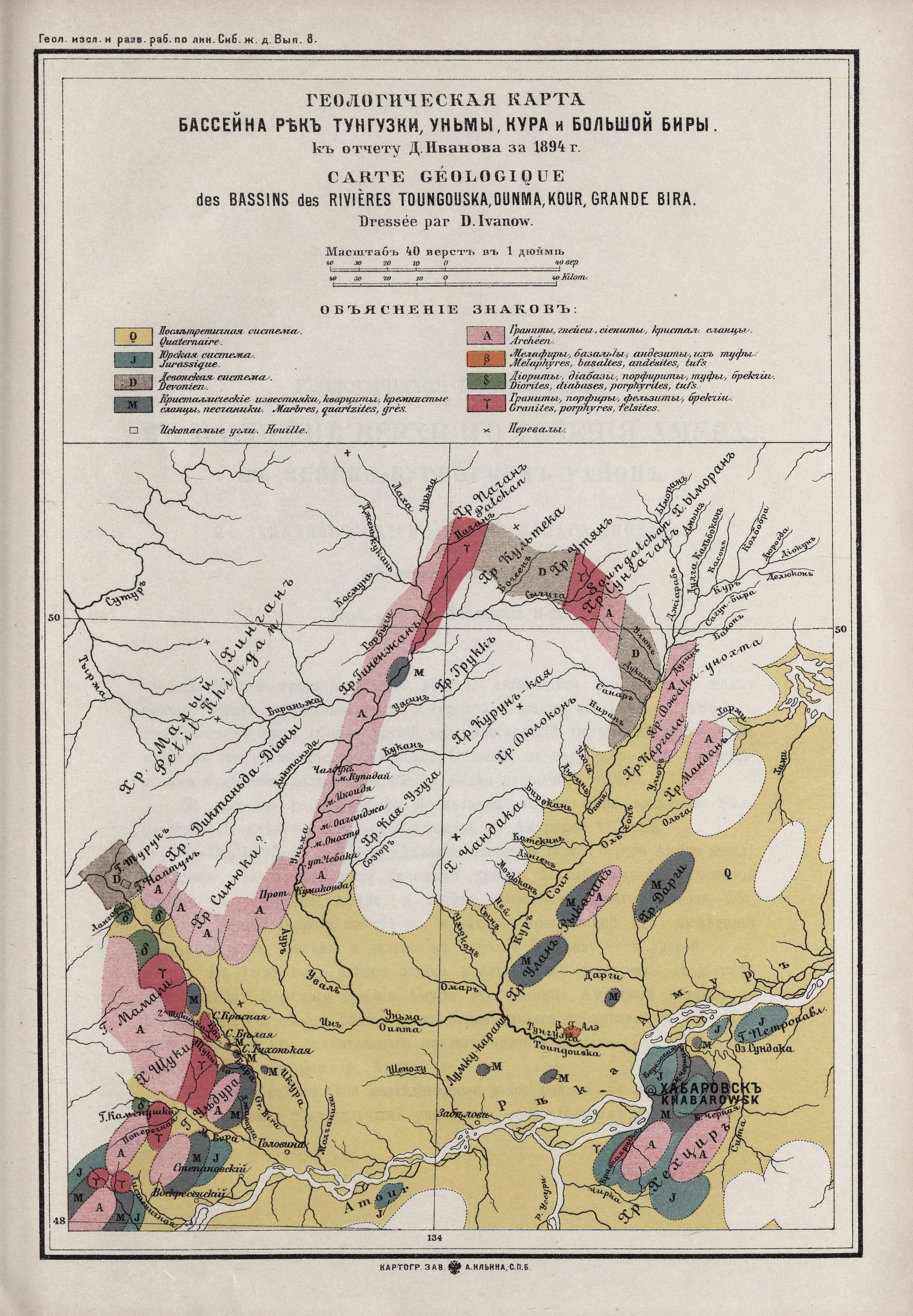 Геологическая карта бассейнов рек Тунгуски, Уньмы, Куры и Большой Биры 1894 года