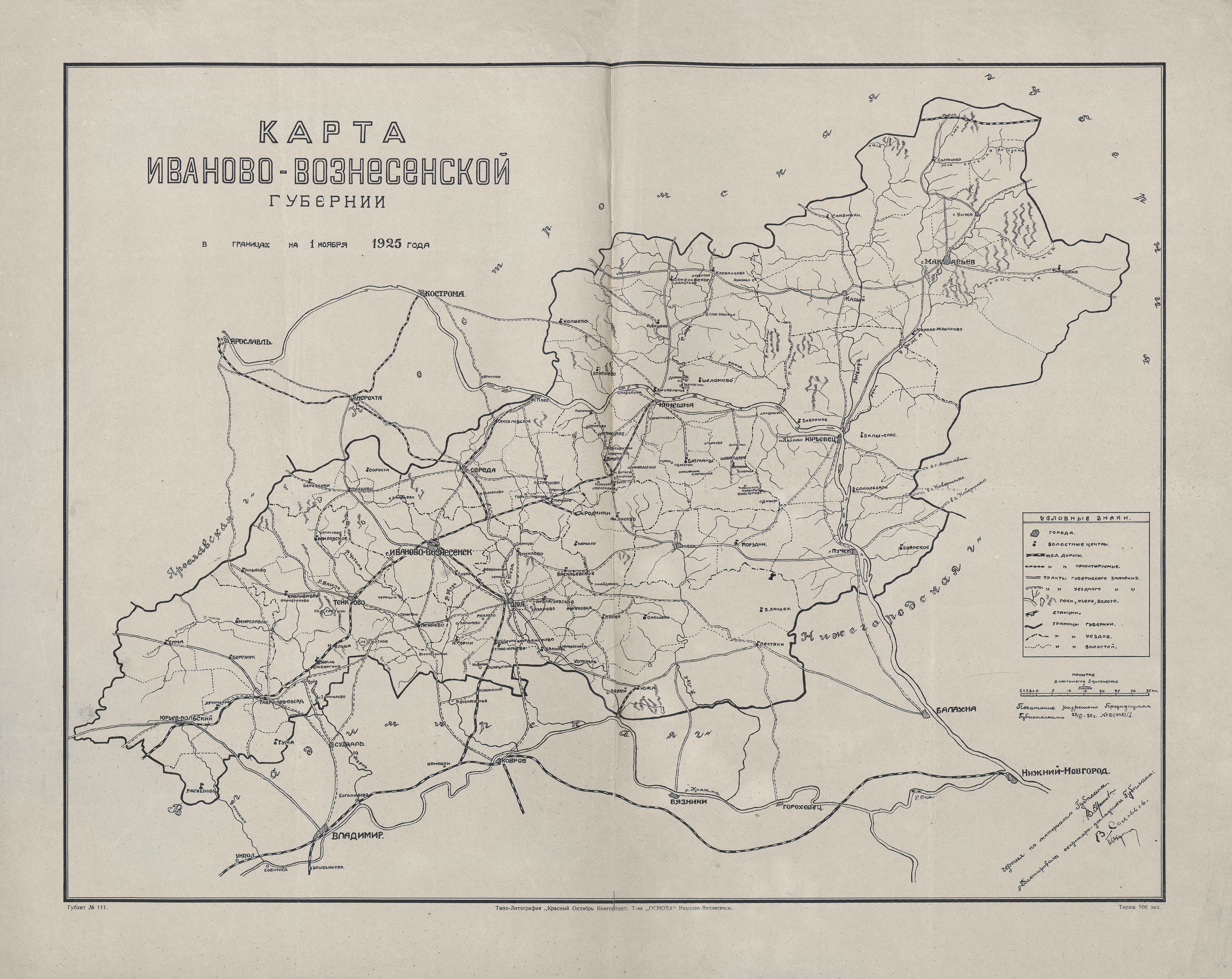 Карта Иваново-Вознесенской губернии типографии Красный Октябрь