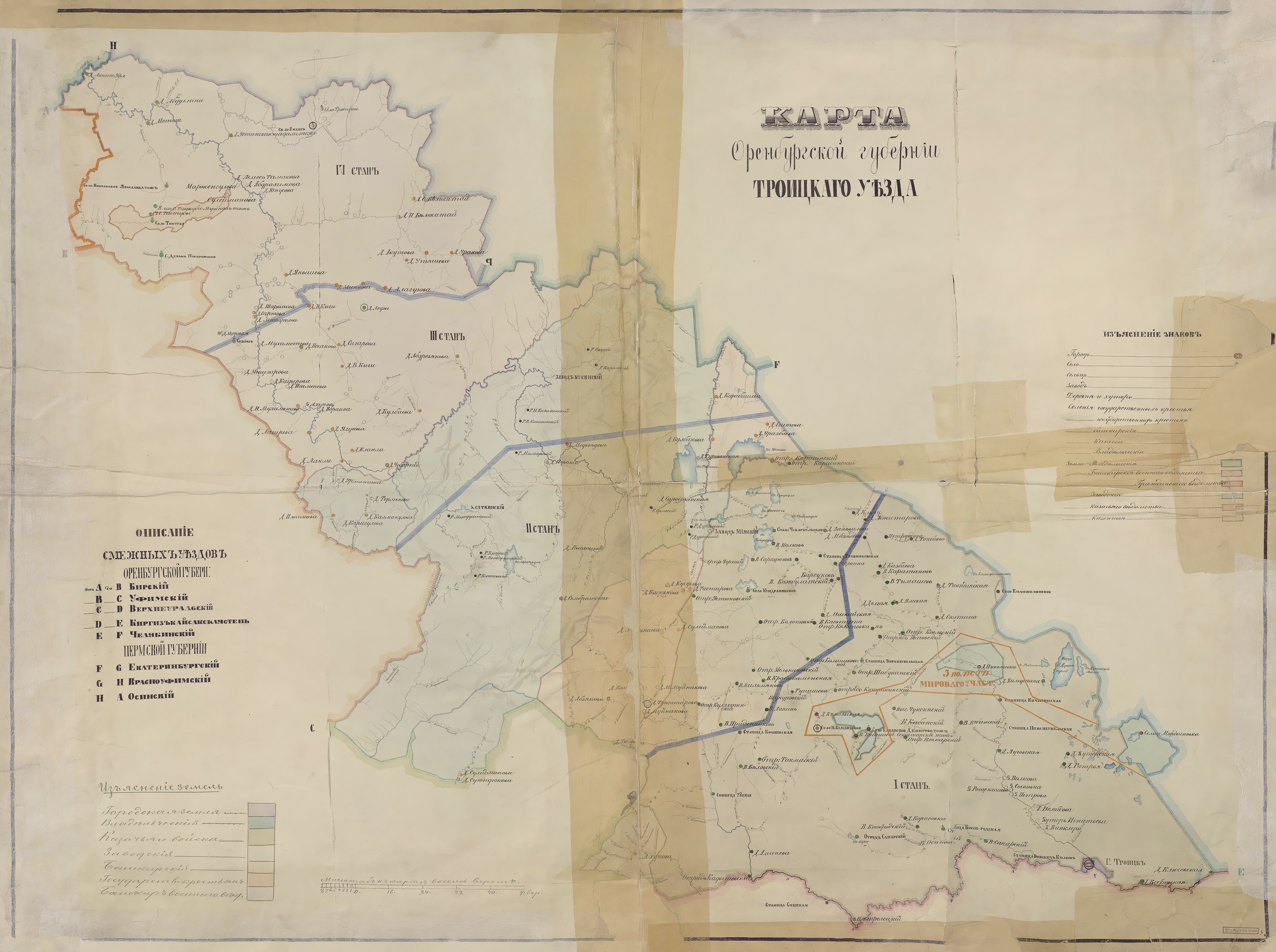 Карта Троицкого уезда Оренбургской губернии середины XIX века