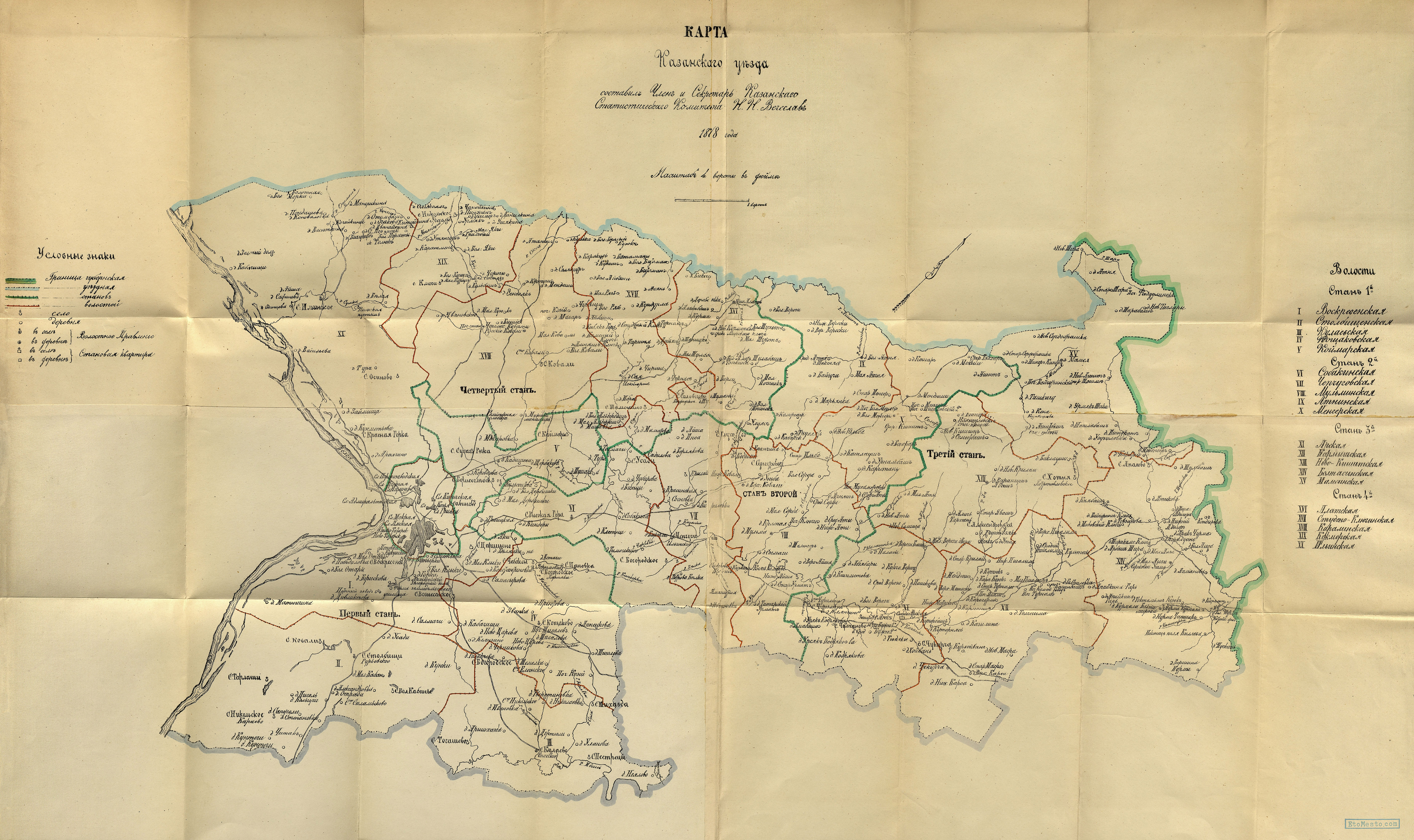 Казанский уезд на карте Вечеслава 1878 г.