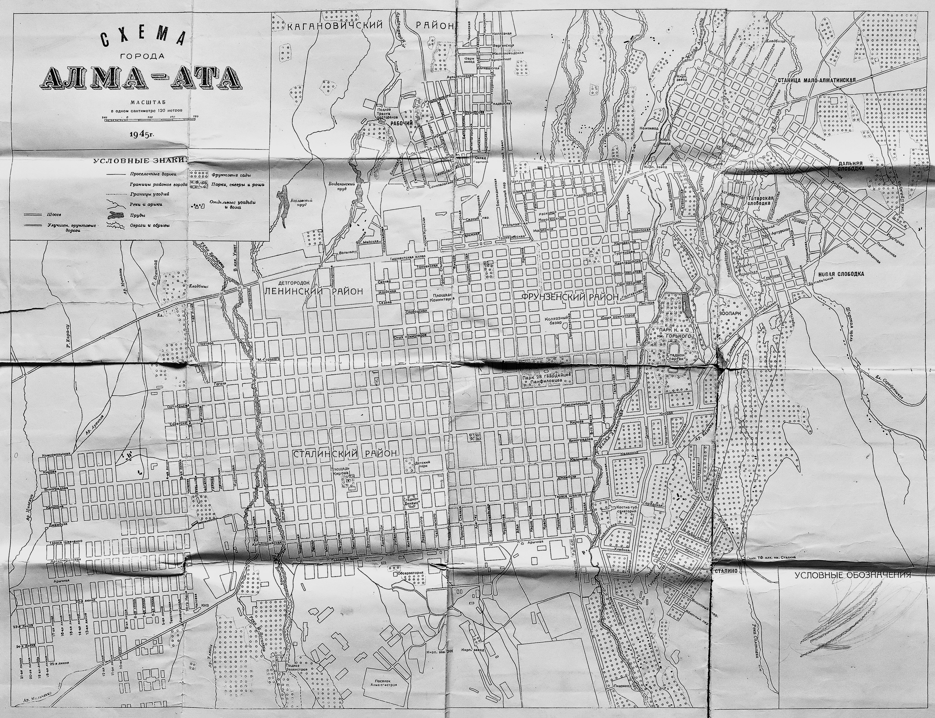 Схема города Алма-Ата 1945 года