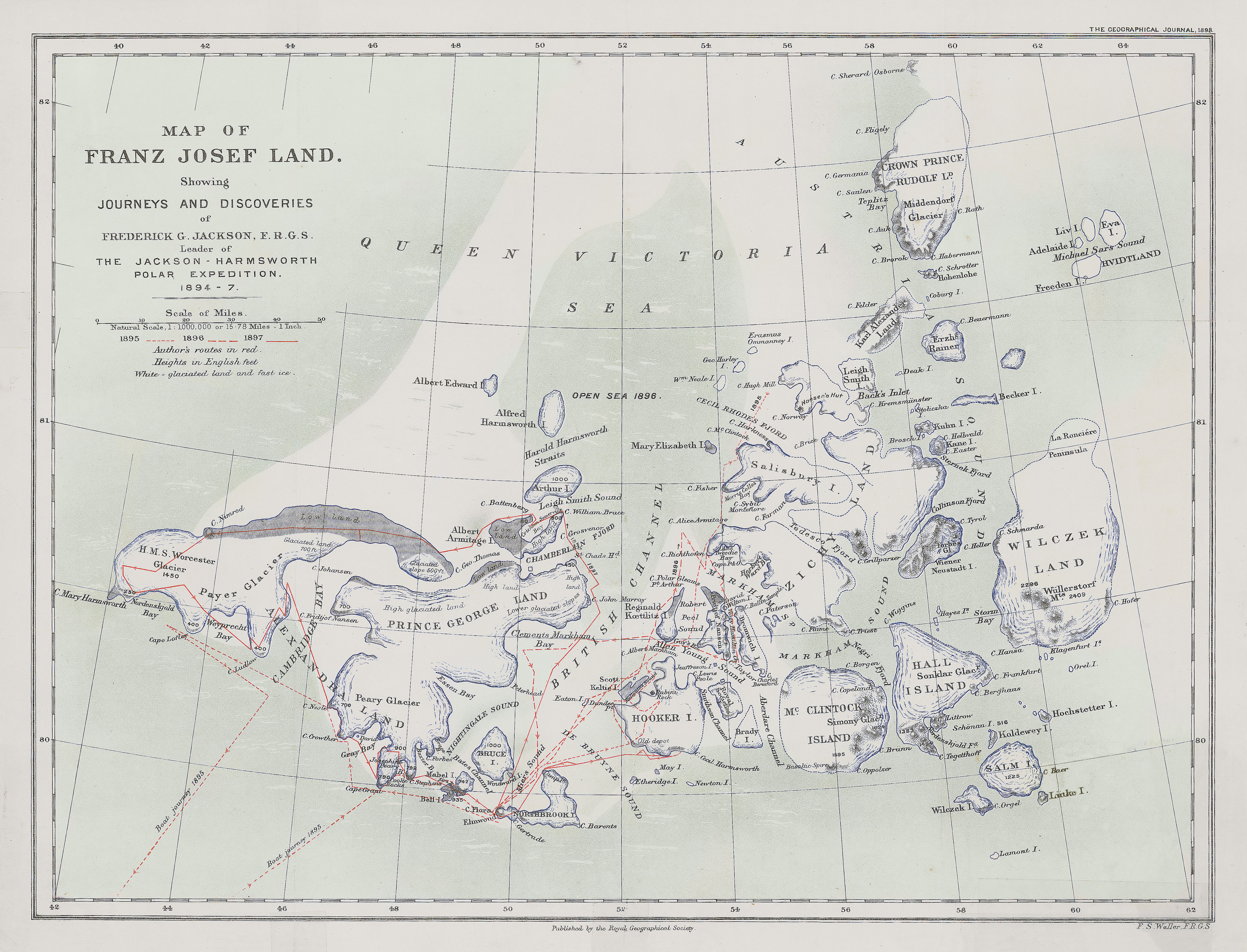 Карта Земли Франца-Иосифа 1897 года с маршрутами Фредерика Джексона