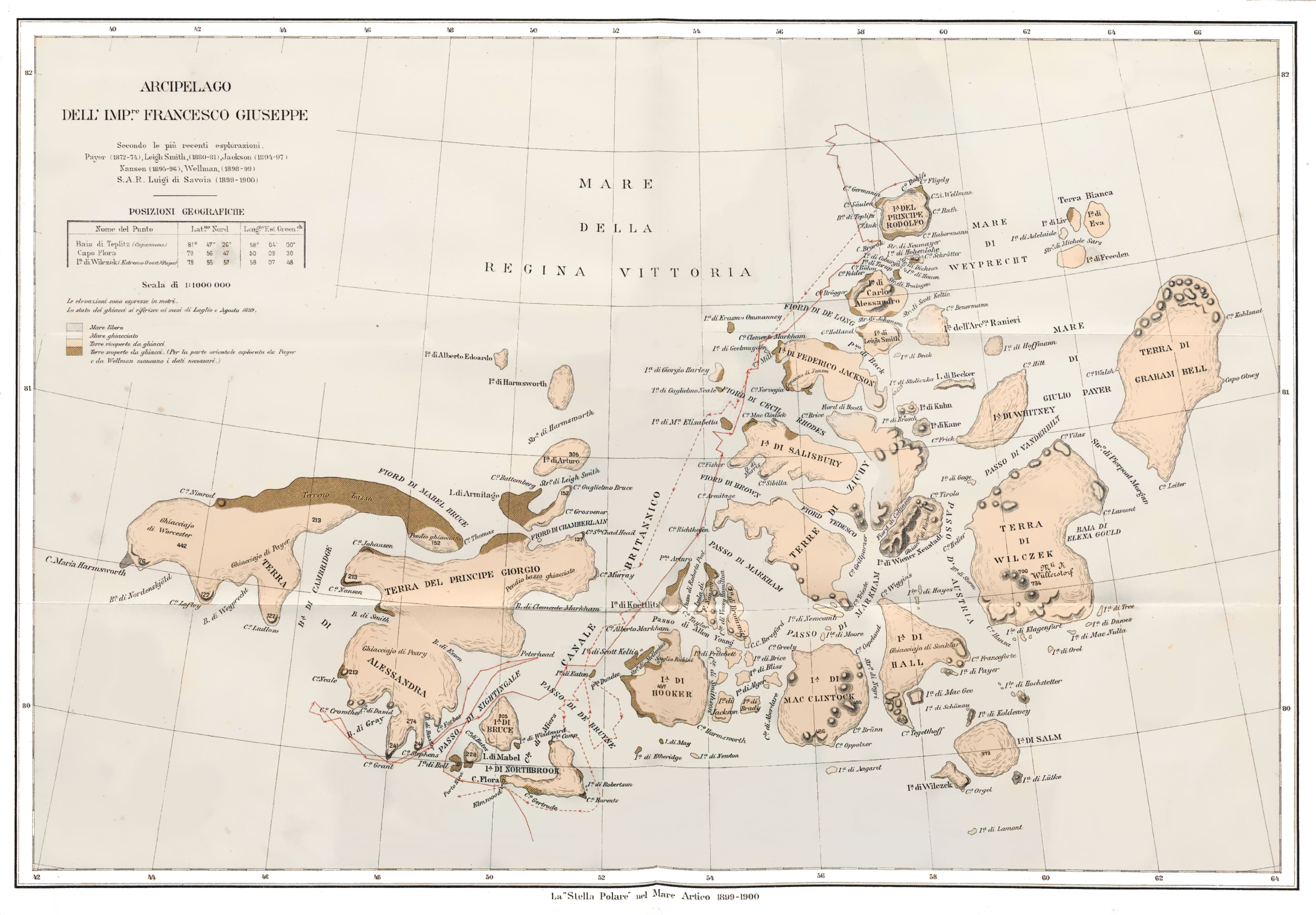 Карта Земли Франца-Иосифа 1900 года и маршрут герцога Абруццкого