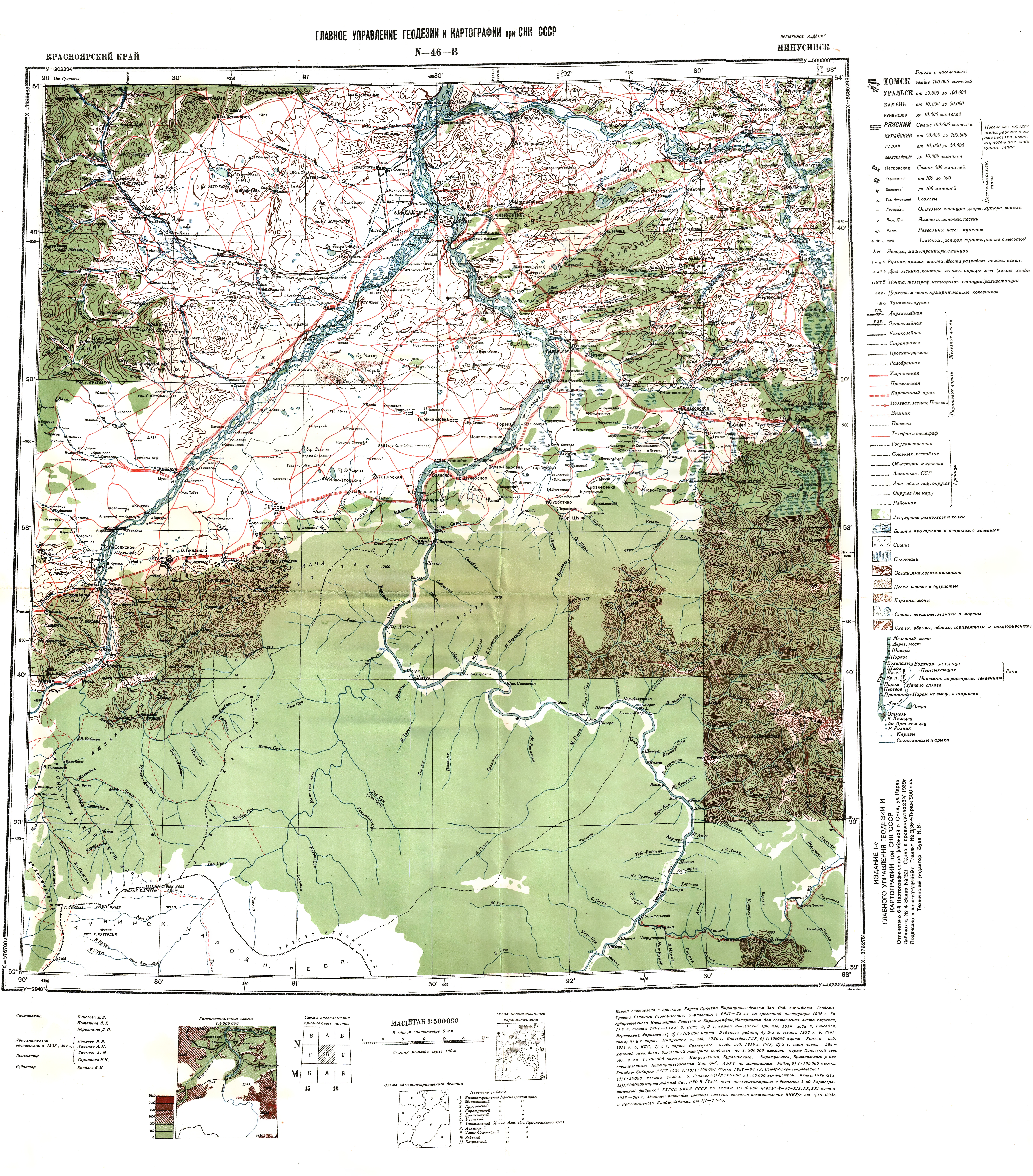 Топографическая карта ГУГК 1939 г.: Красноярский край, N-46-В (Минусинск)