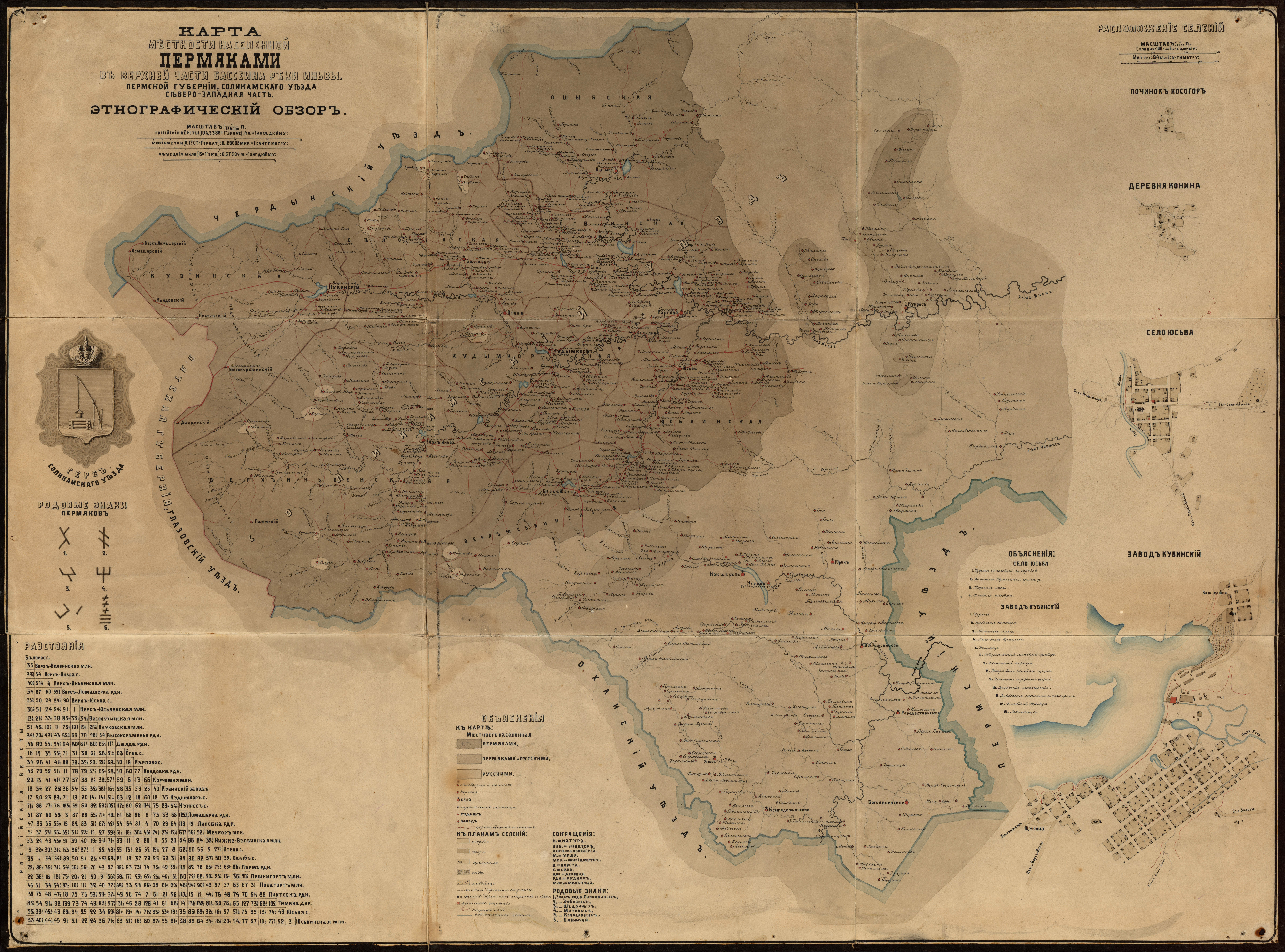 Карта местности, населенной пермяками, в верхней части бассейна реки Иньвы Пермской губернии, Соликамского уезда