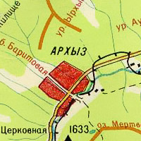 Туристическая карта Архыза, Загедана и Рицы 1991 года с привязкой для Garmin
