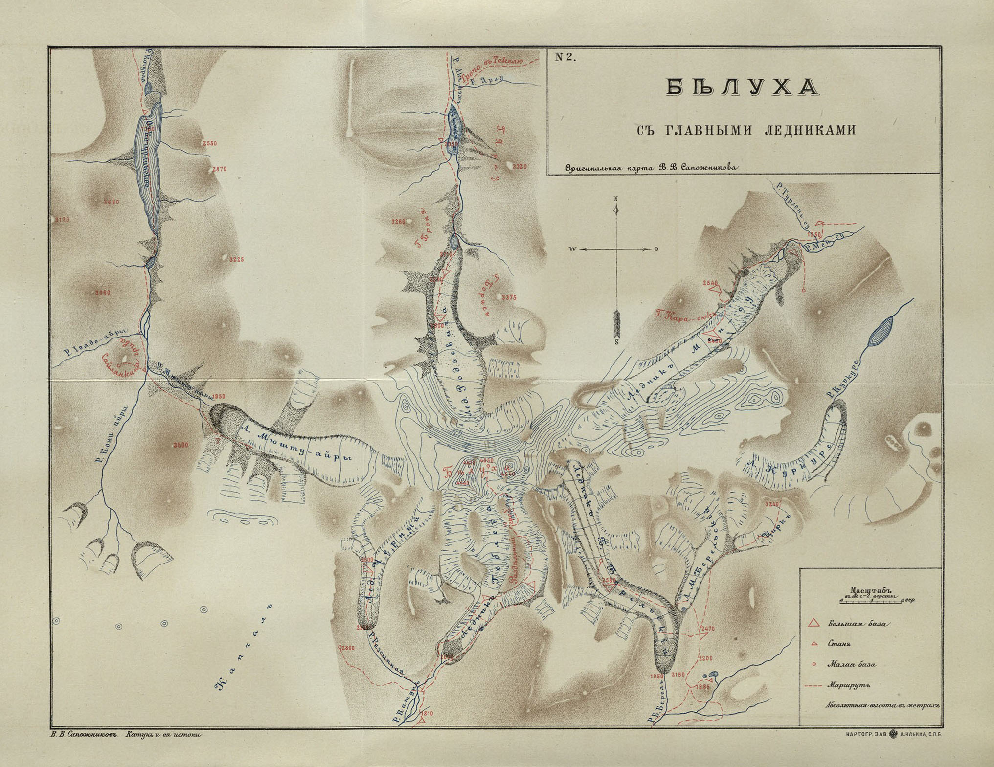 Карта горы Белуха по данным 1897 - 1899 годов