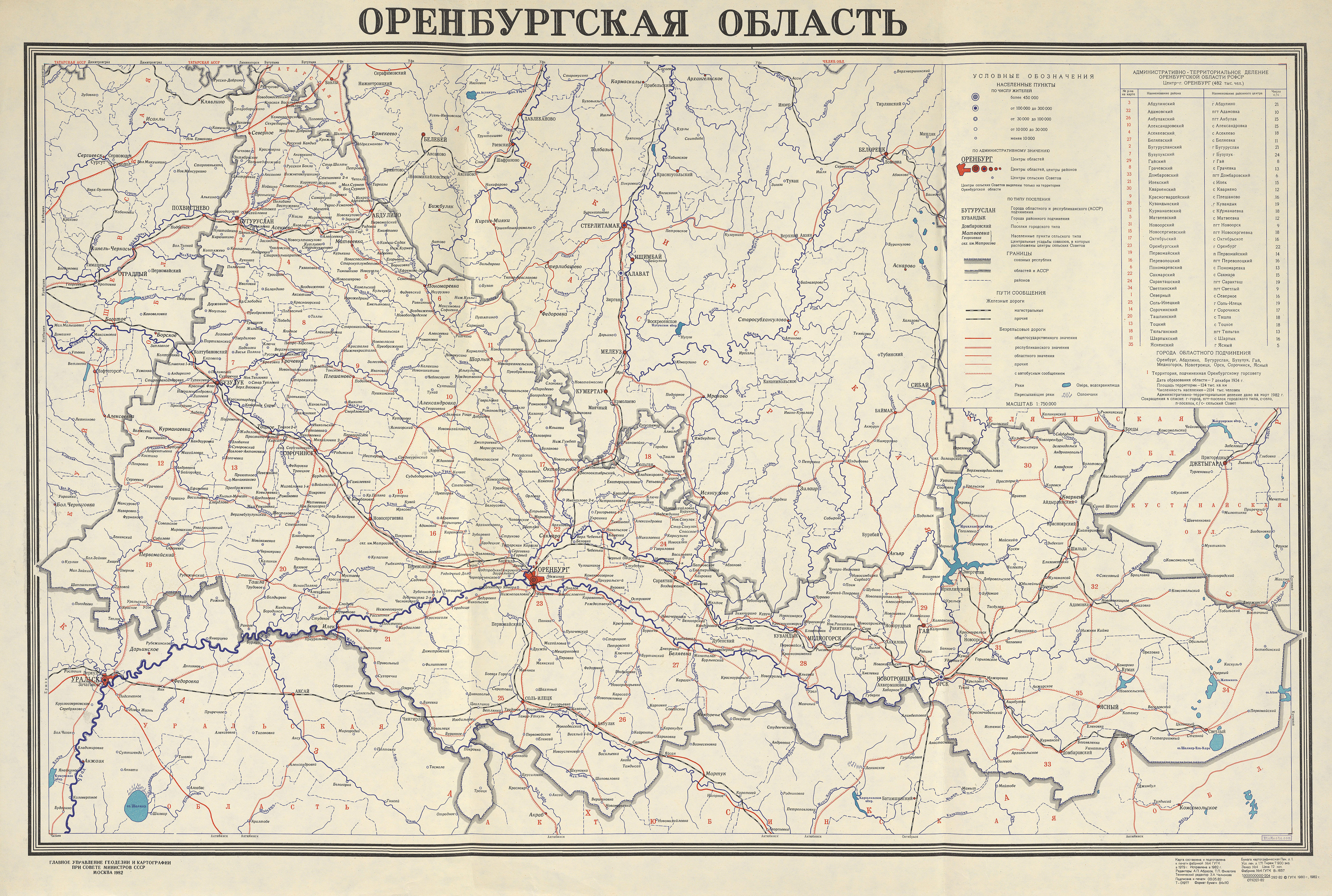 Оренбургская область. Карта административно-территориального деления на 1982 год.