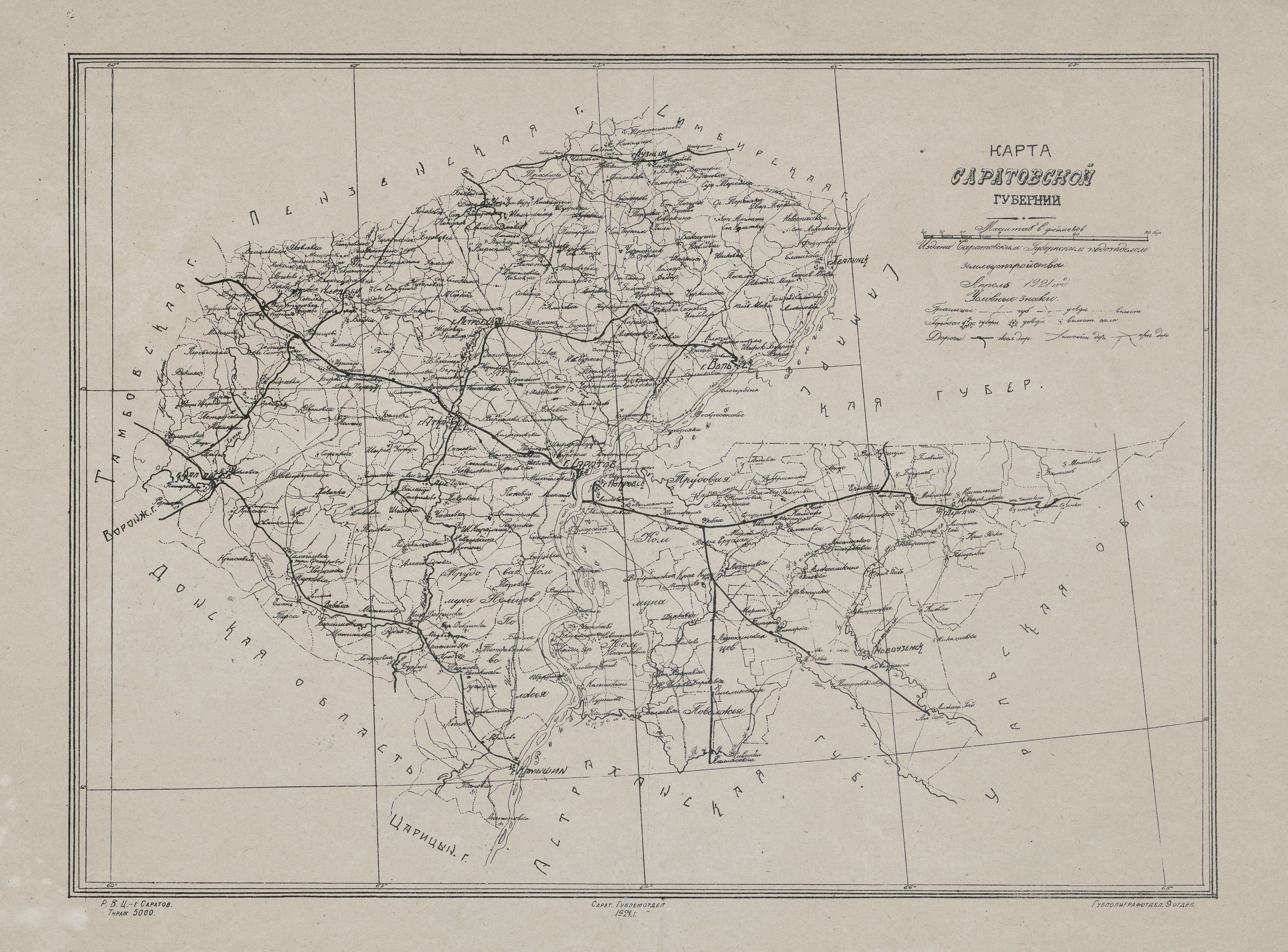 Рукописная схематичная карта Саратовской губернии 1921 г.