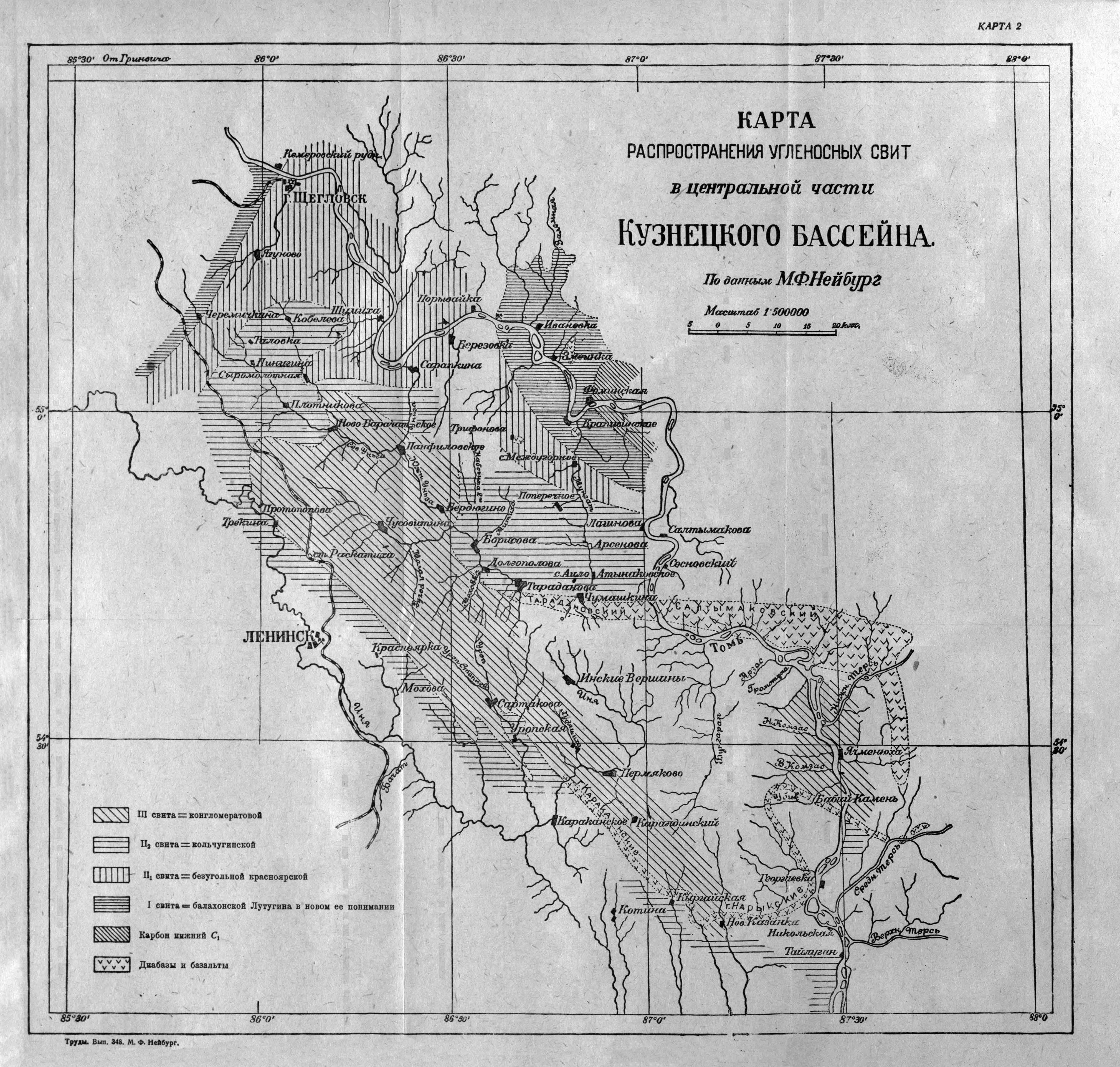 Карта распространения угленосных свит в центральной части Кузнецкого бассейна