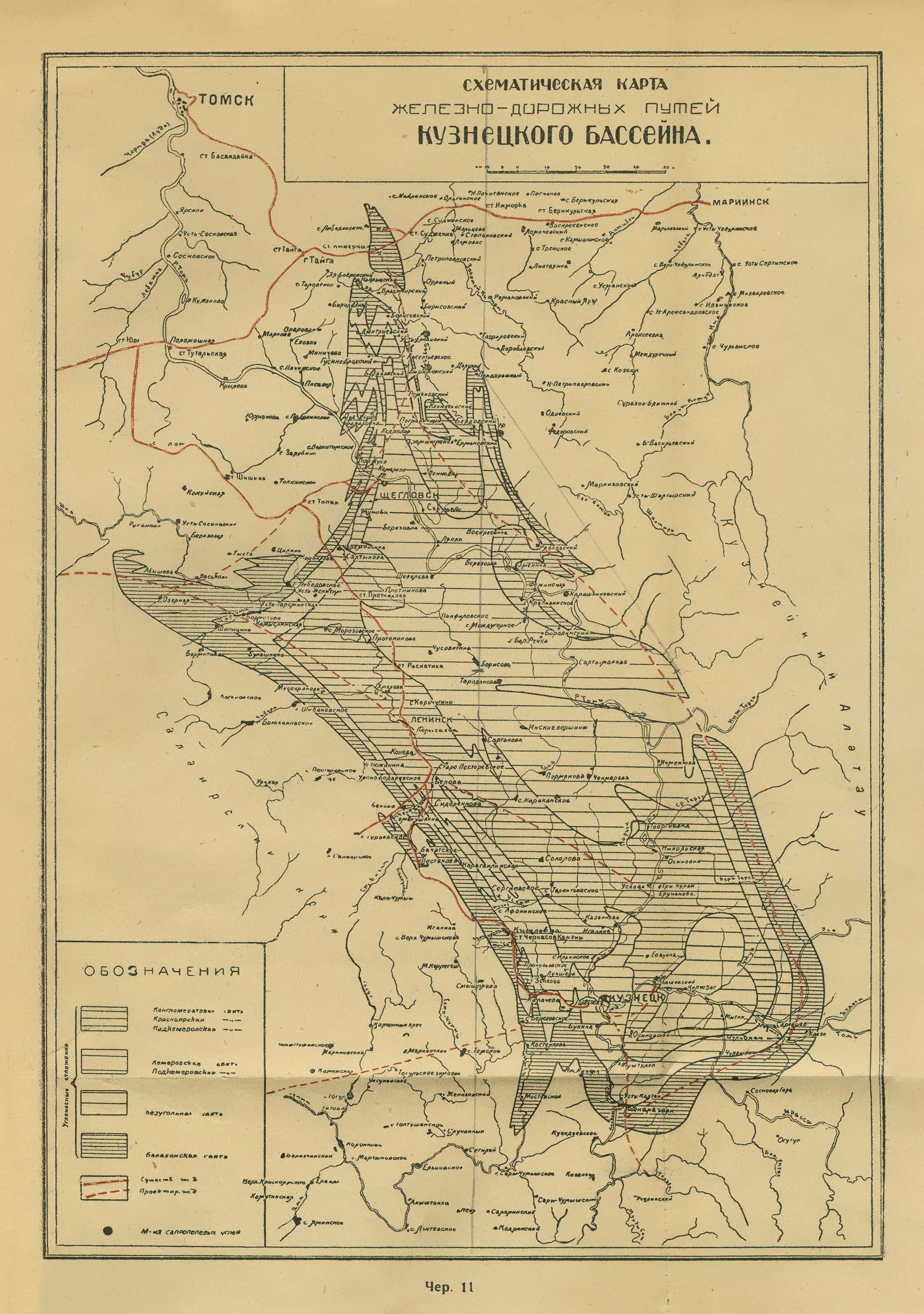 Карта железно-дорожных путей Кузбасса 1930 г.