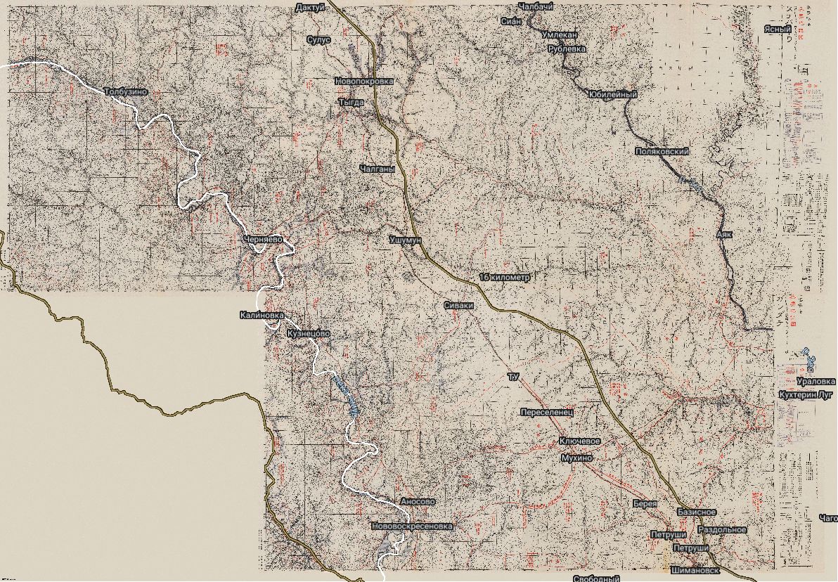 ![]() | Японская километровка от Тыгды до Шимановска 1938 года для навигатора на Андроид Размер: 19000 x 13200 пикселей / 217 Мб |