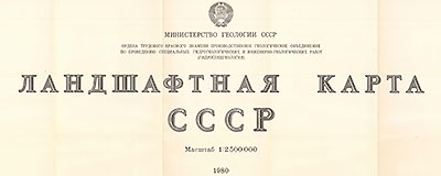 Ландшафтная карта СССР 1980 года, изданная на 16 листах. Ответственный редактор: И.С. Гудилин. Масштаб 1:2500000 (в 1 см. 25 км.). Министерство геологии СССР. К карте прилагается