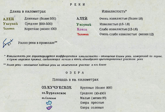 Карта из атласа Алтайского края 1978 года - том I, включающая территории Алтайского края и Республики Алтай.На карте показаны реки и озёра Алтая. Условные обозначения