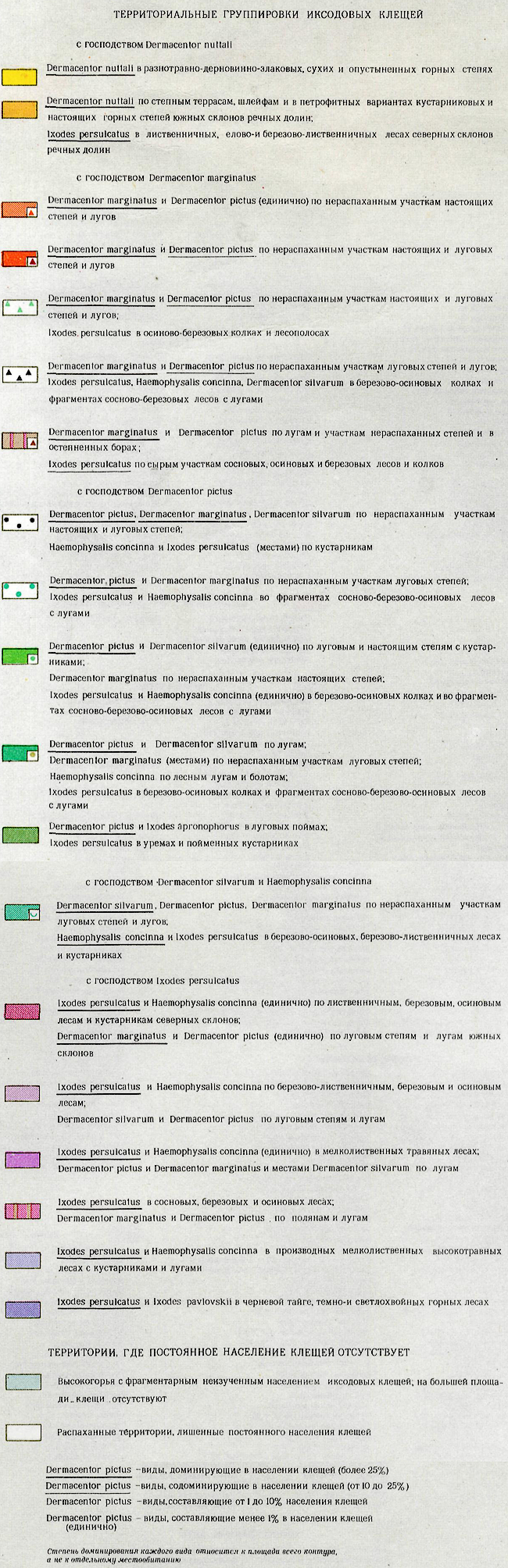 Карта из атласа Алтайского края 1978 года - том I, включающая территории Алтайского края и Республики Алтай.На карте показаны ареалы обитания иксдодовых клещей на Алтае. Условные обозначения