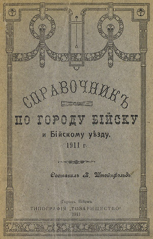 ![]() Карта масштаба 50 верст в дюйме. Из книги В. Штейнфельда: "Справочник по городу Бийску и Бийскому уезду", типолитография "Товарищество", 1911 год.