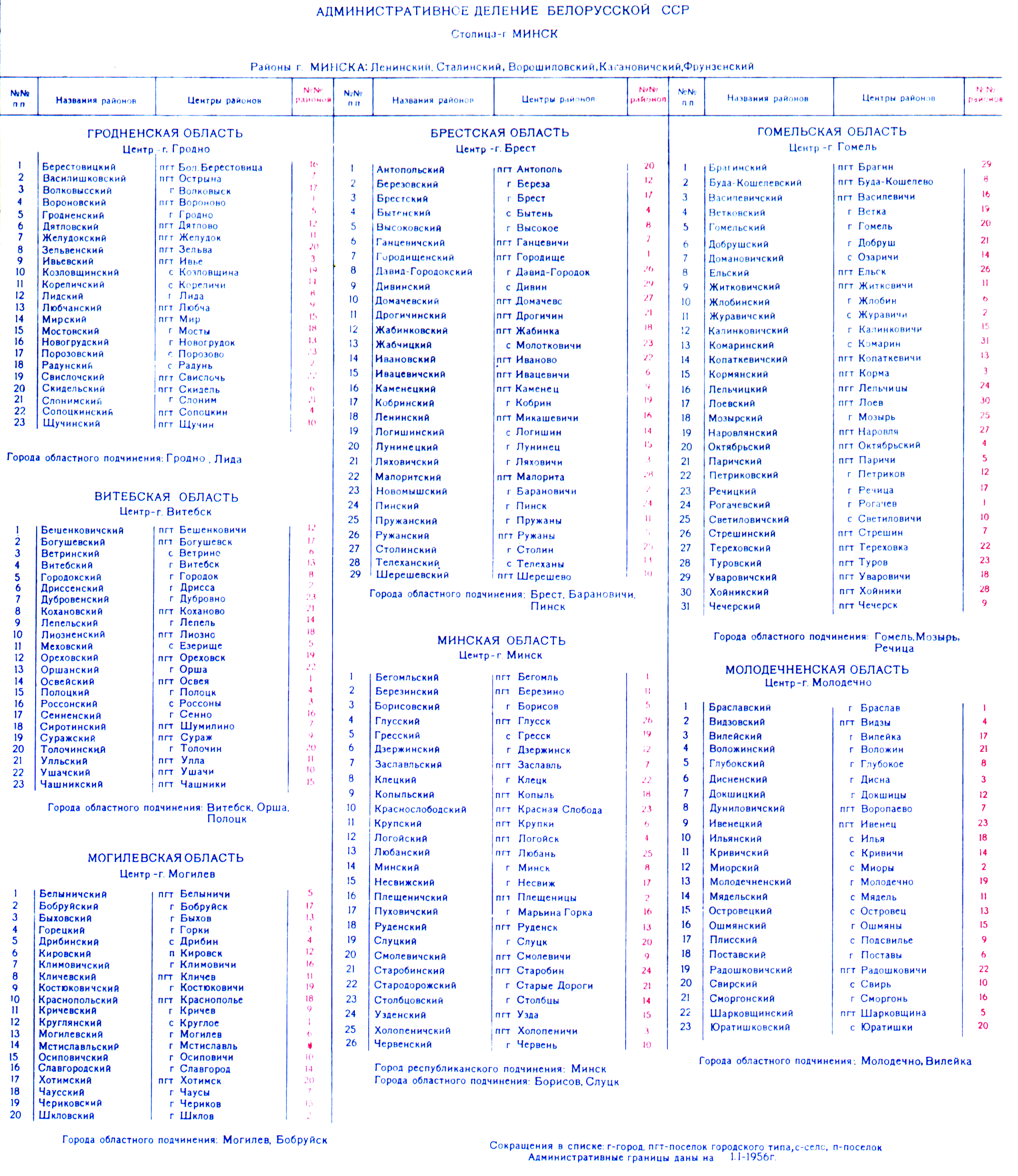 Title: Administrative map of the Byelorussian SSR, 1956