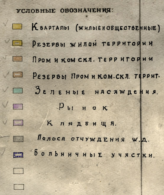 Переработка генерального плана города Брянска произведена в соответствии с постановлением от 10 октября 1948 года совета Министров СССР на основе генерального плана, составленного в 1945 году Гипрогором. Архитектурно-планировочная мастерская при УГА города Брянска "Брянскархпроект". Руководитель Шавырин Б.П.