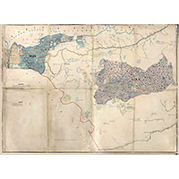 Рукописная карта Челябинского уезда и расположения 9-го и 10-го Башкирских кантонов по новому разделению войска, составленная в чертежной Башкирского войска. Чертил войсковой чертежник чертежной урядник Сафаров. Масштаб в английском дюйме 5 верст.