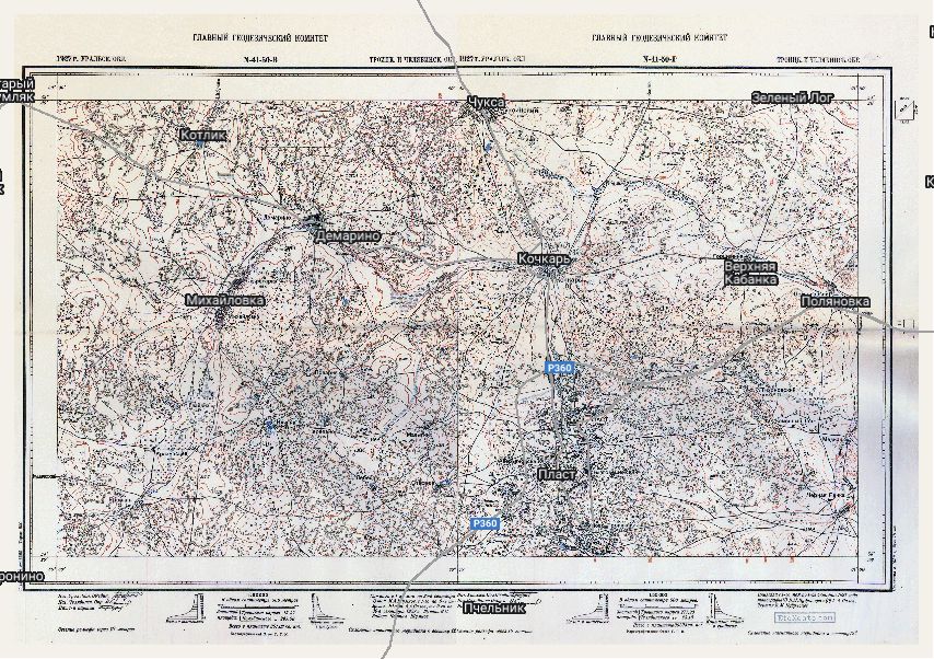 Главный геодезический комитет ВСНХ-СССР. Листы N-41-50-В и N-41-50-Г масштаба 1:50000. Троицкий и Челябинский округ. Съемки 1927 года. Чертил В.М. Кудрявцев и Шумков. Печатано в 1929 году в Госкартогеодезии тиражом 500 экз.