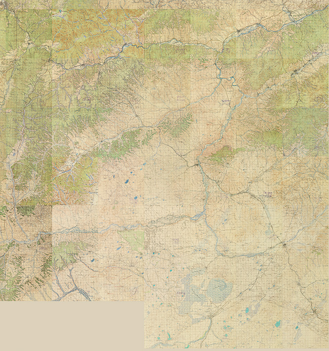 Сборная карта из листов M-50 (часть А по территории Забайкалья) и частично листов M-49 (Чита) топографической военной карты Рабоче-Крестьянской Красной Армии (РККА) масштаба 1:100000, в 1 см. 1 км. Датировка листов от 1931 до 1956 года, в основном 1943 года. Листы 50-х годов созданы по данным 30-х и 40-х годов.