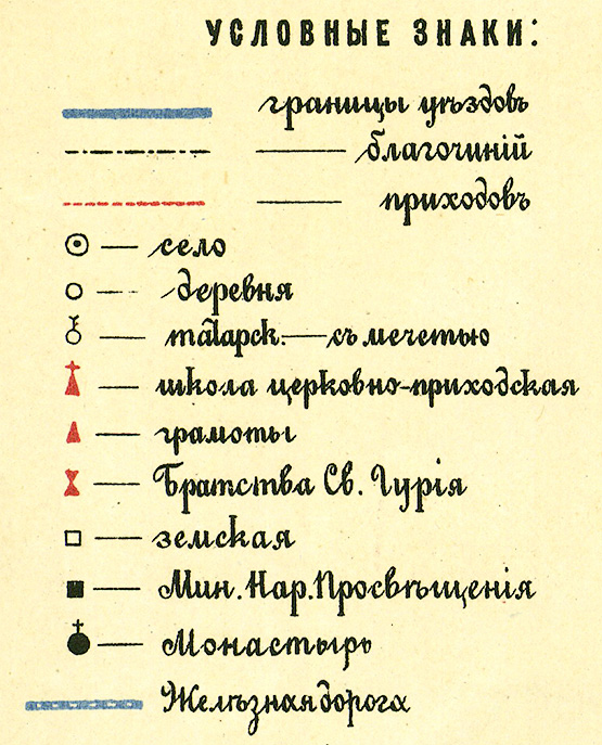 Карта из атласа уездов Казанской губернии. Масштаб 10 верст в дюйме. Составил священник Г.К. Богословский. Типо-литография Казанского университета.