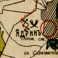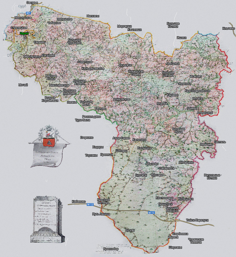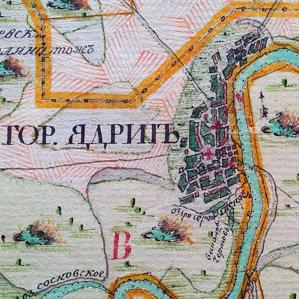 План Генерального Межевания Ядринского уезда масштаба две версты в дюйме 1:84000. По данным межевания с 1793 года.