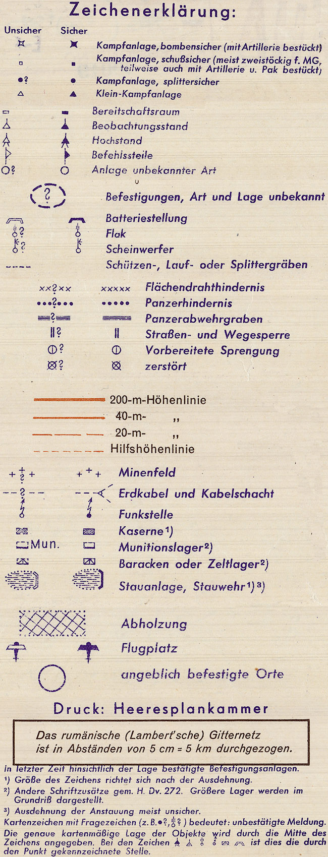 Немецкая копия топографической карты "Rumänien 1:100000" на территорию Молдавии. Составлена из листов топографических карт Румынии размером 74x50 см. с указанием международных и административных границ, основных дорог, железнодорожных линий, водных объектов и населенных пунктов. Листы первоначально изданы Serviciul Geografic al Armatei или Institutul Geografic Militar. Масштаб в 1 см. 1 км., километровка. Карты созданы на основе верстовок и прочих карт с 1890 по 1938 год, актуализированных на 1938 - 1941 годы.