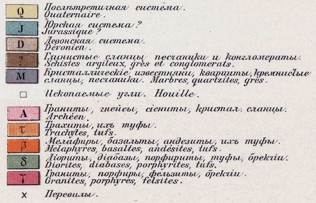 ![]() | Карта хребтов Сихотэ-Алиня 1896 года - геология |