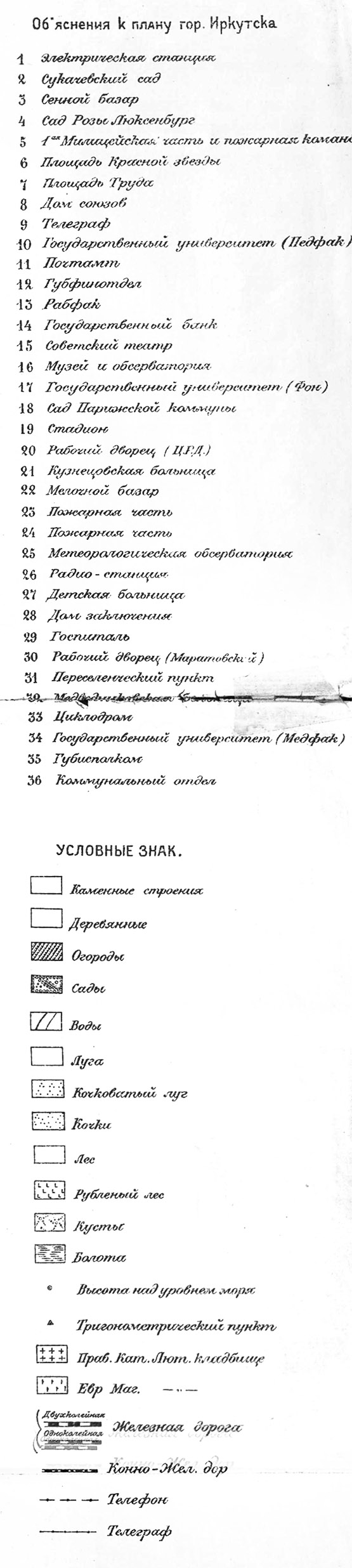 Издание Иркутского Военно Топографического отдела. Масштаб 1:16800, 200 саженей в дюйме. Отпечатано в мае 1924 года. Из книги: "Весь Иркутск. Адресно-справочная телефонная книга на 1924 г."