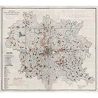 Карта составлена по материалам калужского Райзо в 1934 году. Отпечатана на фабрике Картолитография МОКО, Москва. Тираж 1000 экз. Масштаб в 1 см. 500 м. Размер 111x103 см. Показаны: усадьбы, пашни, сенокосы, кустарники, леса, выгоны, реки и пруды, дороги, овраги, границы, сельсоветы, селения, больницы, ветпункты, агропункты, отделения связи, заводы, карьеры, учлеспромхоз, лесные сторожки.