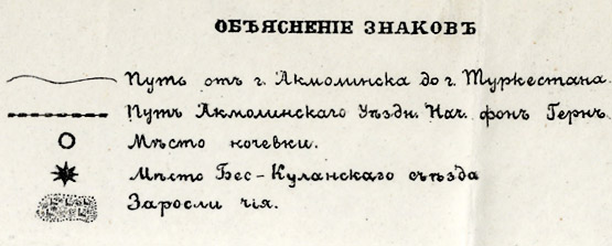 Карта к статье Г. фон Генре: "Поездка на реку Чу через пустыню Бедпак-дала". Масштаб 40 верст в дюйме. Записки Западно-Сибирского отдела Императорского русского географического общества.