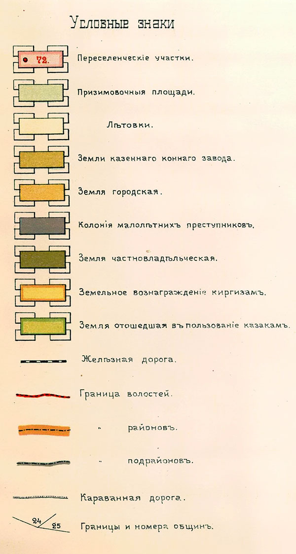 Карта Тургайско-Уральского переселенческого района, Актюбинский уезд. Масштаб 10 верст в дюйме. Чертил А. Ширяев, литография Э. Брандта.