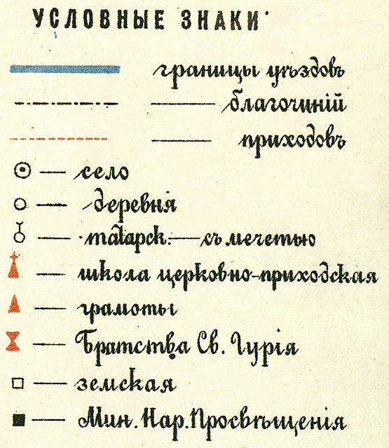 Карта из атласа уездов Казанской губернии. Масштаб 10 верст в дюйме. Составил священник Г.К. Богословский. Типо-литография Казанского университета.