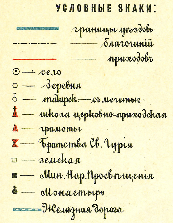 Карта из атласа уездов Казанской губернии. Масштаб 10 верст в дюйме. Составил священник Г.К. Богословский. Типо-литография Казанского университета.