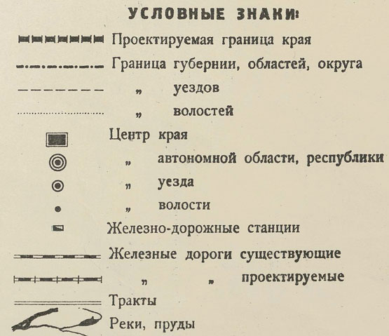 Издание Оргбюро Вятско-Ветлужского края. Масштаб в английском дюйме 26.675 км. Показаны проектируемые железные дороги. Тираж 3000 экз. Размер 105x71 см.