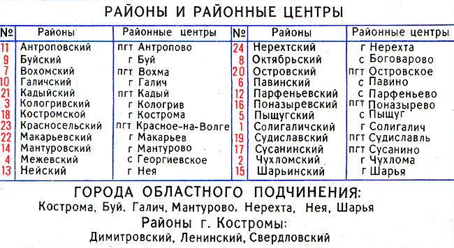Title: Administrative map of the Kostroma region, 1975
