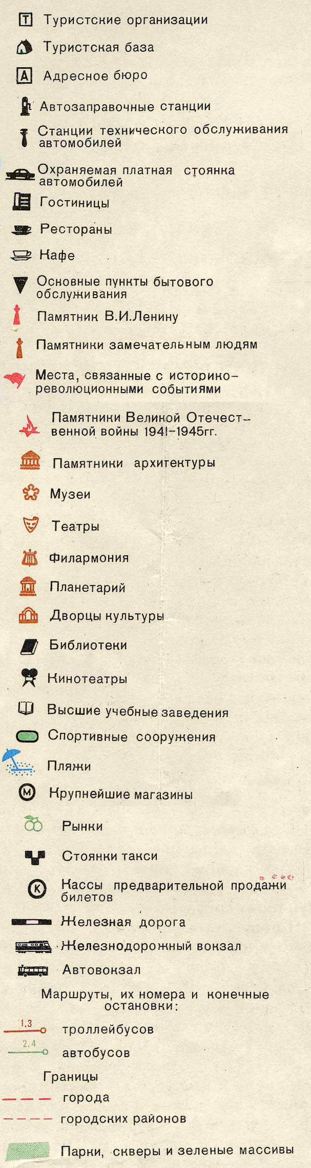 ![]() Главное управление геодезии и картографии при совете министров СССР, Москва 1984. Схема составлена и подготовлена к печати фабрикой №10 ГУГК в 1981 году. Исправлена в 1984 году. Редактор: В.Г. Шмырков. Формат бумаги 100x72 см. Тираж 16600.Условные обозначения