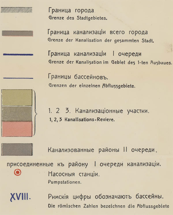 ![]() | План г. Москвы 1912 года с показанием района существующей канализации |