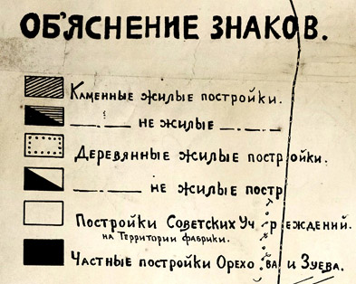 Оригинальное название: "План Никольских фабрик Пролетарска-Диктатура Орехово-Зуевского Государственного хлопчатобумажного Треста". Составлен в 1925 г. Масштаб 1:2000.