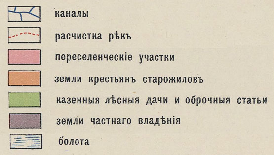 Карта осушения Барабинской степи Томской губернии, Каинского уезда. Масштаб 1:1260000, 30 вёрст в дюйме. Издание Переселенческого управления главного управления землеустройства и земледелия. Печатано в картографическом заведении товарищества А.Ф. Маркса. Из Атласа Азиатской России.