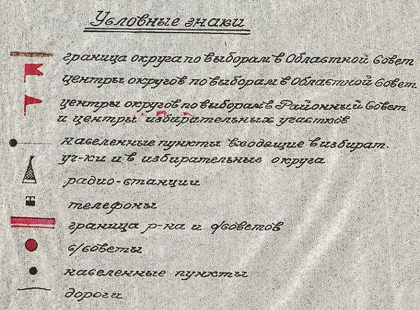 Схема-карта Маслянинского района, с расположением избирательных участков, избирательных округов, по выборам в местные Советы депутатов трудящихся 21 декабря 1947 г. Масштаб в 1 см. 2 км. Условные знаки: граница округа по выборам в Областной Совет, центры округов по выборам в Областной Совет, центры округов по выборам в Районный Совет и центры избирательных участков, населенные пункты входящие в избирательные участки и в избирательные округа, радио-станции, телефоны, границы района и сельских советов, сельские советы, населенные пункты, дороги.